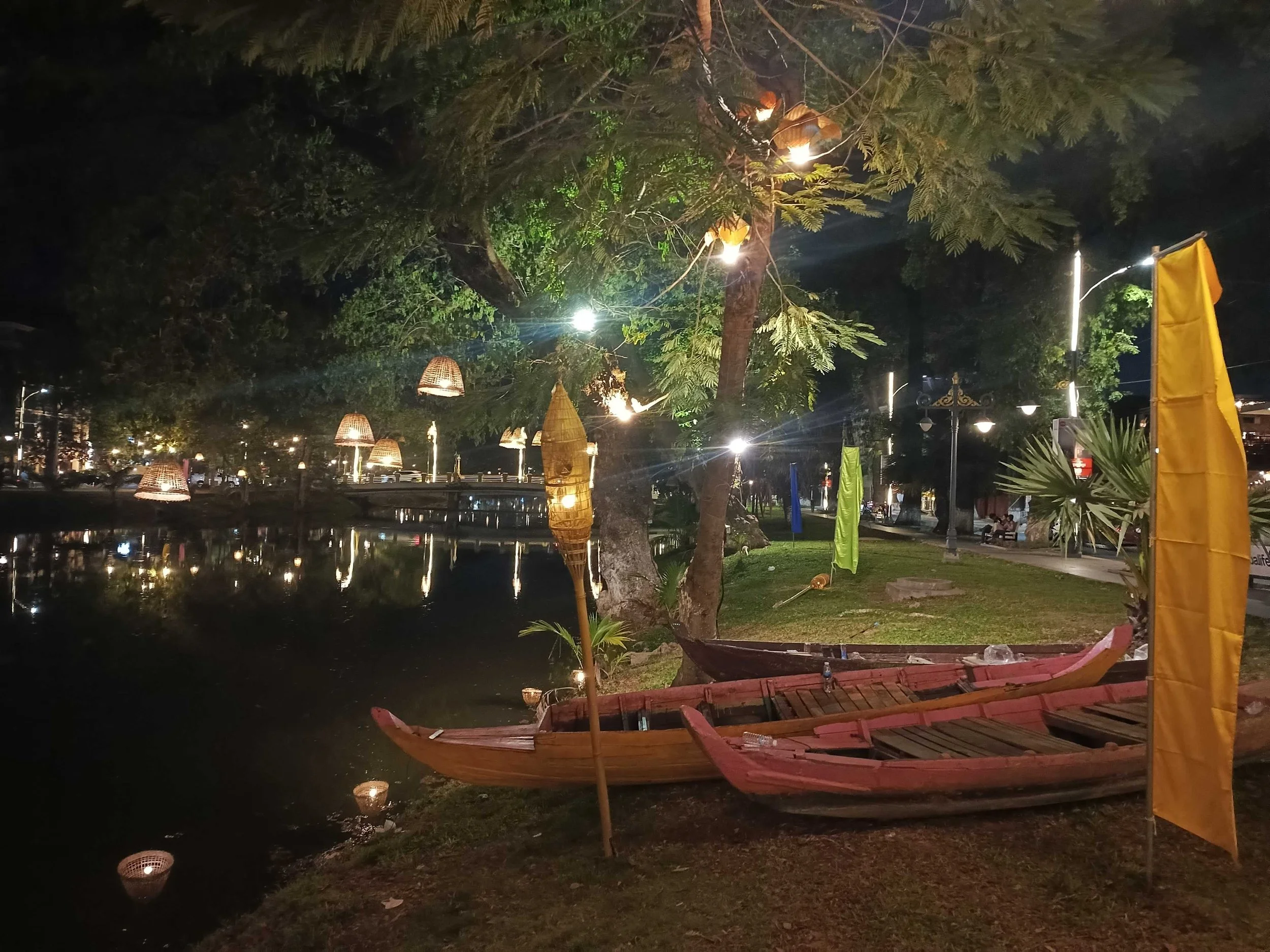 Decorations light up the Siem Reap river ahead of Khmer New Year.